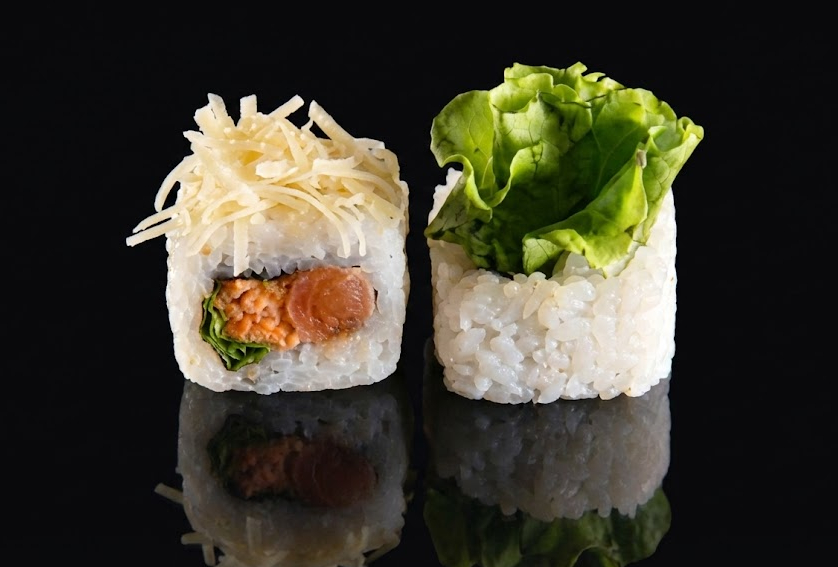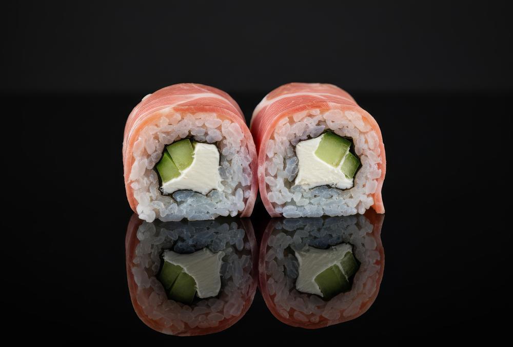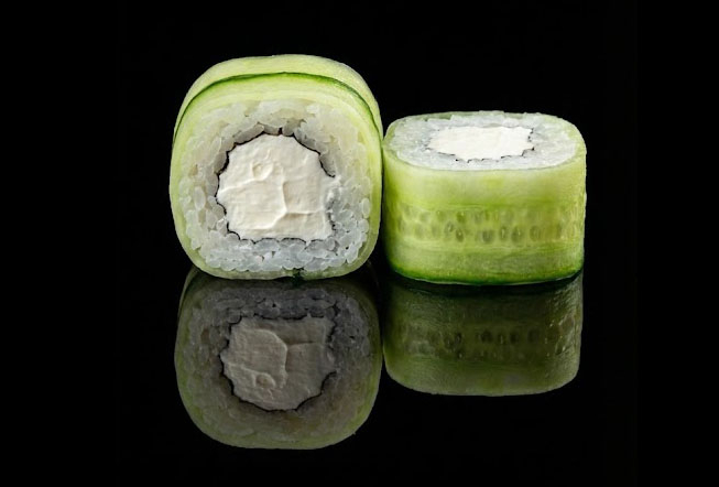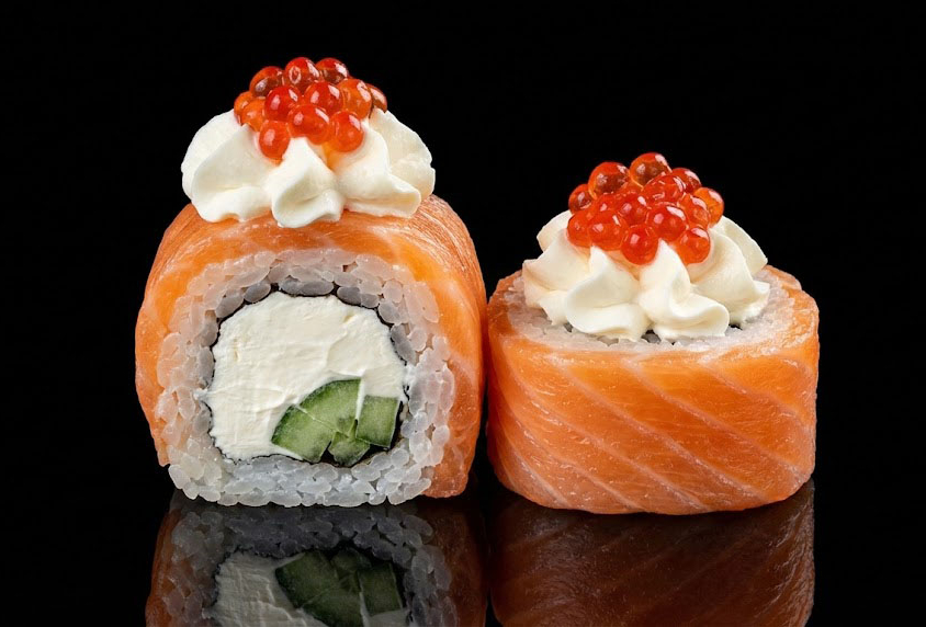 Рис, огурец, сыр Филадельфия, лосось, красная икра
