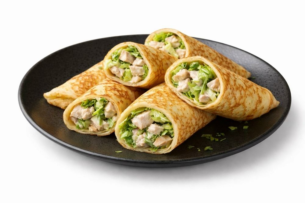 Блин с начинкой: курица, соус, салат