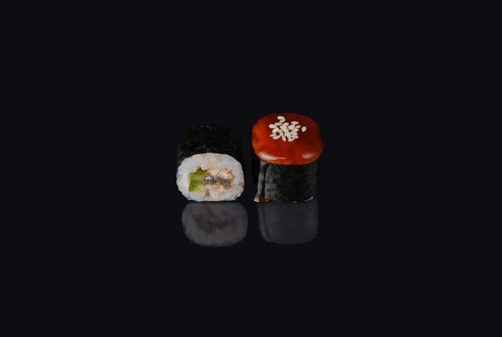 Нори, рис, угорь, соус унаги, кунжут