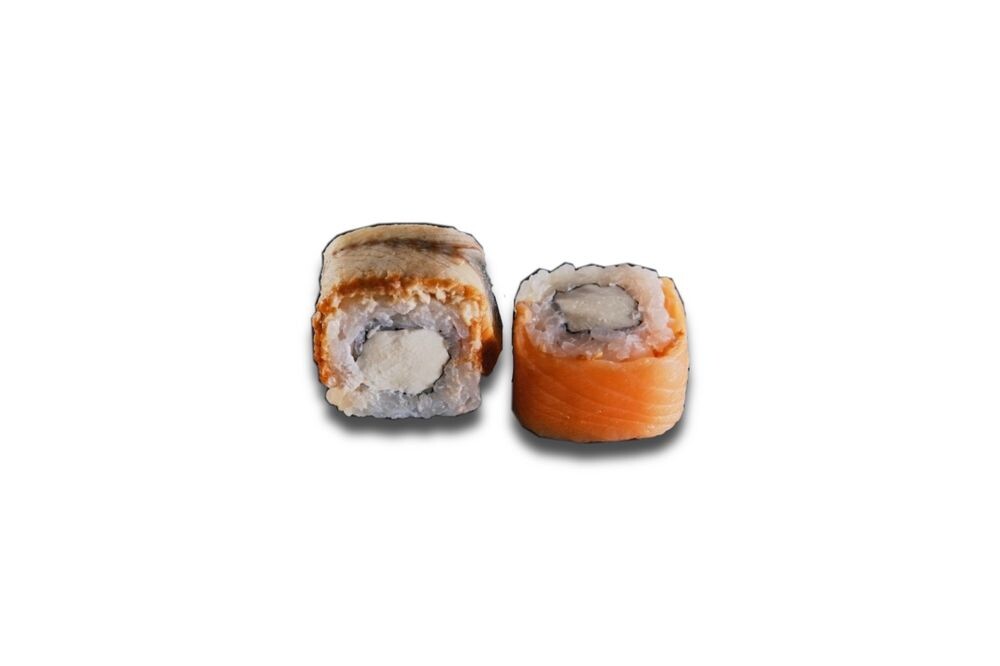 Сыр филадельфия, лосось, угорь, соус унаги, кунжут