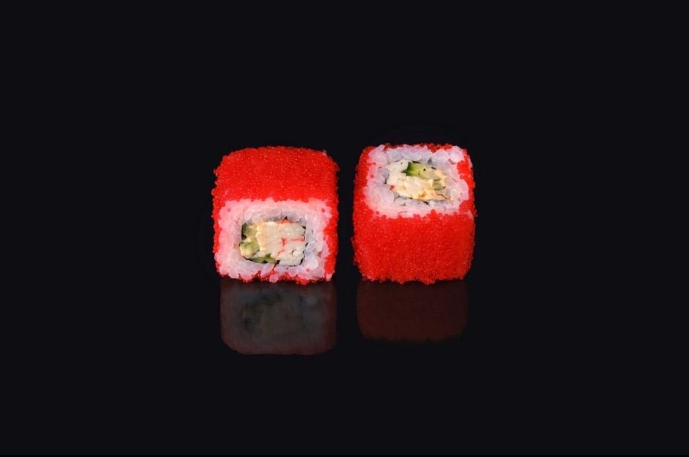 Сыр филадельфия, снежный краб, огурец, соус спайси, тобико