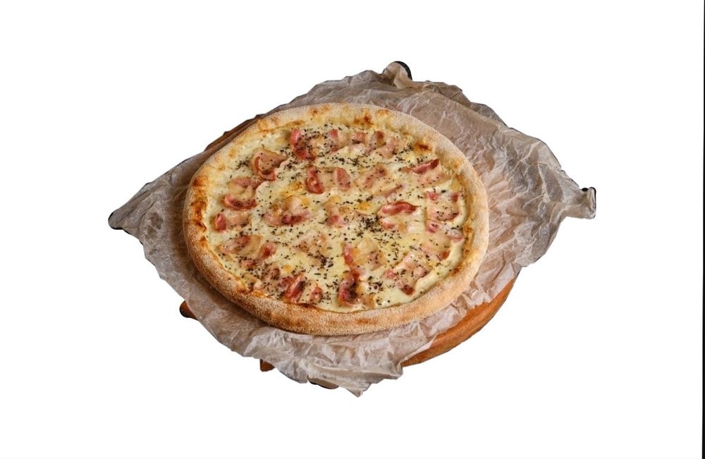 Соус чесночно-сливочный, сыр моцарелла, бекон, базилик